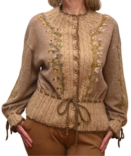 Kardigan beżowy haftowany ręcznie, rozmiar L/XL
