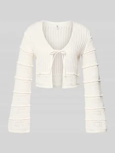 Kardigan rozpinany damski od 'Only';Model „Natalie”;efekt: jednolity kolor;Krój: krój regular fit;Zapięcie: wiązanie;rękaw: rozszerzane rękawy;Wykończenie materiału: ażur z dzianiny;materiał: mieszanka bawełny