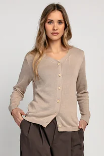 Klasyczny zapinany kardigan z bawełny organicznej i kaszmiru F1979 beżowy