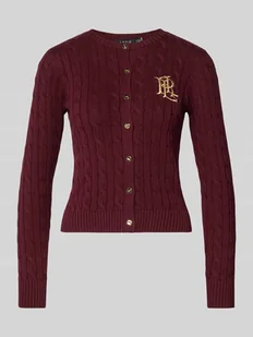 Kardigan rozpinany ze ściegiem warkoczowym i wyhaftowanym logo Model 'RALHAN'
