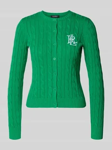 Kardigan rozpinany ze ściegiem warkoczowym i wyhaftowanym logo Model 'RALHAN'
