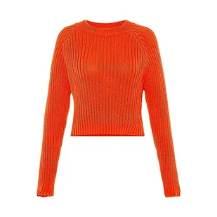 myMo Damski sweter z dzianiny prążkowany pomarańczowy XL/XXL, pomarańczowy, XL