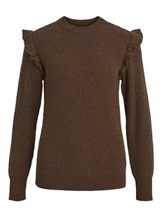Object Damski sweter OBJMALENA L/S Ruffle NOOS, Dark Earth/Szczegóły: melanż, XS, Dark Earth/Szczegóły: melanż, XS