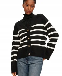 PIECES CZARNY SWETER DAMSKI W PASKI Z GUZIKAMI V DEKOLT M XQA