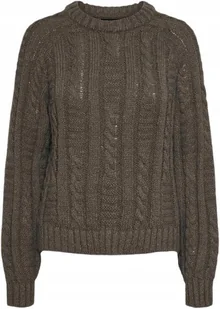 PIECES SWETER DAMSKI BRĄZOWY WARKOCZE OZDOBNE DŁUGI RĘKAW S X_A