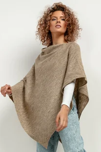 Ponczo z dzianiny swetrowej, T419, one size, ciemny beż