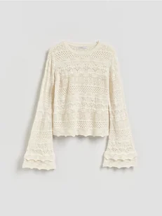 Reserved - Ażurowy sweter z bawełną - kremowy