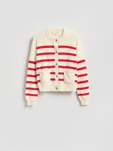 Reserved - Bawełniany kardigan w paski - czerwony