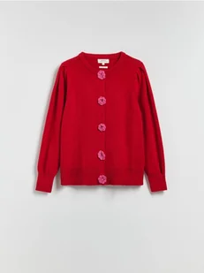 Kardigan o prostym kroju, wykonany z gładkiej dzianiny z bawełny i domieszką alpaki.
