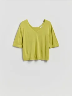 Sweter o prostym kroju, wykonany z dzianiny z wiskozą.