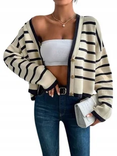 SWETER DAMSKI W PASKI ECRU NA GUZIKI CASUAL Opis Produktu Marka Shein Kolor Ecru Skład 100%Akryl Metka papierowa Brak Metka wewnętrzna Tak Rozmiar uniwersaln...