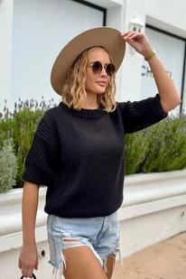 Sweter oversize z krótkim rękawem - czarny One size