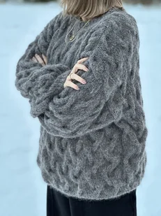 Sweter w całości został wykonany ściegiem warkoczowym przypominającym fale. Włóczka, z której został wydziergany, to luksusowe połączenie czesankowej superfine alpaca (77 %) i delikatnie lśniącego jedwabiu (23 ...