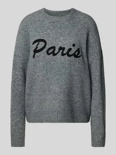 Sweter damski z dzianiny Vero Moda;Model ‘Boom’;Efekt: Melanż;Krój: Krój regular fit;Aplikacja: Wyhaftowany napis ;Detale: obniżone ramiona;Kształt kołnierza: