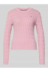Sweter z dzianiny damski Tommy Hilfiger;Efekt: jednolity kolor, dwa kolory;Krój: Krój slim fit;Wzór: w paski;Aplikacja: Detal z logo;Kształt kołnierza: