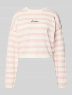Sweter z dzianiny o pudełkowym kroju z wzorem w paski i wyhaftowanym logo