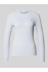 Sweter z dzianiny damski Gant;Mieszanka bawełny z dodatkiem streczu;Krój slim fit;Ścieg warkoczowy;Okrągły dekolt;Wyhaftowane logo;Długość tyłu w rozmiarze S: 58 cm;Długość rękawa w rozmiarze S: 61 cm