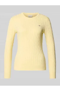 Sweter z dzianiny damski Gant;Mieszanka bawełny z dodatkiem streczu;Krój slim fit;Ścieg warkoczowy;Okrągły dekolt;Wyhaftowane logo;Długość tyłu w rozmiarze S: 58 cm;Długość rękawa w rozmiarze S: 61 cm