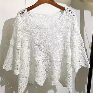 TEMU Damska bluzka w stylu bohemy na wiosnę i , casualowa, urocza, z okrągłym dekoltem i krótkim rękawem