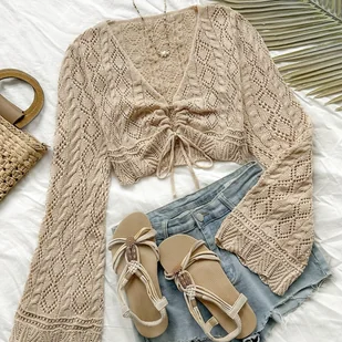 TEMU Elegancki i wszechstronny, ażurowy sweter typu pulower do relaksującego stylu wakacyjnego