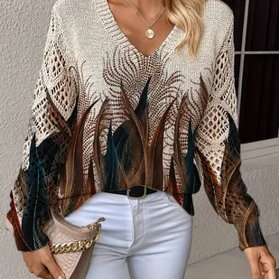 TEMU Elegancki jesienno-zimowy, wiosenno-letni styl, sezonowe stylizacje, bohemy, modny nowy sweter z dekoltem w serek, długim rękawem dla kobiet, z