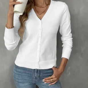 TEMU Kardigan damski z dekoltem w serek na guziki, jednokolorowy
