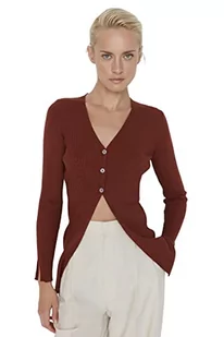 Trendyol Damski sweter z dekoltem w serek, gładki, dopasowany kardigan, brązowy, M, Brązowy, M