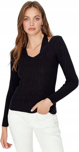TRENDYOL GRANATOWY SWETER DAMSKI Z PÓŁGOLFEM I PRĄŻKOWANIEM 38 6BA