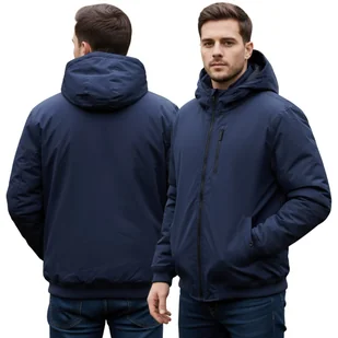 Granatowa kurtka MĘSKA, zapinana na zamek, Z KAPTUREM, ocieplana podszewka L Ta klasyczna męska kurtka w kolorze granatowym to doskonały wybór dla mężczyzn ceniących prostotę, wygodę i funkcjonalność. Wykonana z wytrzymałego materiału, świetnie chroni przed wiatrem i chłodem, a dzięki ocieplanej podszewce zapewnia komfort w niższych temperaturach. Kurtka posiada praktyczny kaptur, który można regulować, oraz kilka kieszeni – zewnętrznych i wewnętrznych – idealnych na telefon, klucze czy portfel. Elastyczne ściągacze w pasie i przy rękawach gwarantują dobre dopasowanie i ochronę przed zimnem. To uniwersalny model, który sprawdzi się zarówno na co dzień, jak i podczas aktywności na świeżym powietrzu.