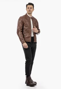 Kurtka Męska Mauritius Pilotka Elegancka Skóra Naturalna Brązowa M Brązowy Męska kurtka skórzana Mauritius to połączenie wyrazistego stylu motocyklowego z ponadczasową elegancją, idealne dla mężczyzn ceniących jakość i charakter. Wykonana z naturalnej skóry jagnięcej, zachwyca miękkością, trwałością i perfekcyjnym dopasowaniem, podkreślając sylwetkę. To stylowa kurtka męska na zamek, która doskonale sprawdzi się zarówno w codziennych, jak i bardziej wyrazistych stylizacjach. PARAMETRY I NAJWAŻNIEJSZE INFORMACJE: Rodzaj: kurtka męska, kurtka skórzana, kurtka motocyklowa Materiał wierzchni: