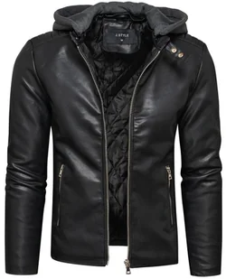 Kurtka skórzana z kapturem- męska kurtka wykonana z ekoskóry. Ta kurtka posiada 3 kieszonki: dwie boczne, które są zamykane na zamek i jedną wewnętrzną wsuwa...