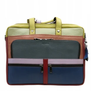 Aktówka torba na laptopa skórzana rączki regulowany pasek kieszenie OLIVKA