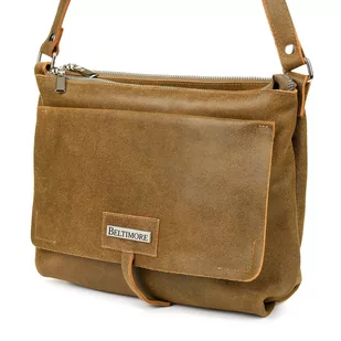 Beltimore Torebka Skórzana 2komorowa Klapa Pasek brązowa N14 brązowy, beżowy