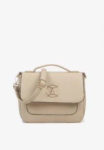 Beżowa Elegancka Torebka z Klapką z Metalową Klamerką Liorita