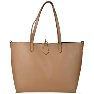 Pojemna skórzana torebka damska worek shopper jasnobrązowa