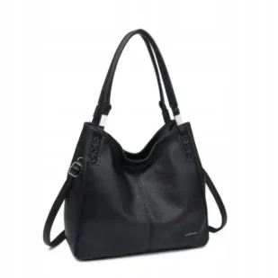 Czarna Torebka Damska Worek Shopper na Ramię LUIGISANTO Skóra Ekologiczna