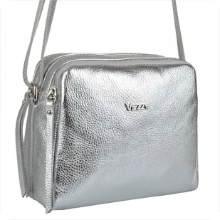 Modna skórzana listonoszka damska M srebrna Indeks: 35 Proponujemy Paniom torebkę skórzaną listonoszkę VEZZE w nowym fasonie produkcji włoskiej w rozmiarze M...