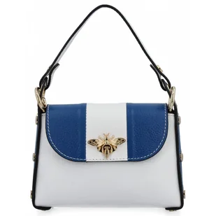 Elegancka torebka skórzana od renomowanej marki Vittoria Gotti to doskonały wybór dla kobiet, które cenią ponadczasową klasykę i wysoką jakość. Wykonana z solidnej, naturalnej skóry, zachwyca trwałością oraz starannym wykończeniem, które widać w każdym detalu. Klapka z efektownym zapięciem w kształcie pszczoły dodaje jej wyjątkowego charakteru i stanowi subtelny, biżuteryjny akcent. Model ten stworzono z myślą o wygodzie – możesz nosić go w dłoni lub na ramieniu, dzięki praktycznej rączce i dołączonemu paskowi. Kompaktowy rozmiar sprawia, że torebka bez trudu pomieści najważniejsze drobiazgi, takie jak telefon, klucze czy ulubiona pomadka. Świetnie sprawdzi się zarówno na co dzień, jak i podczas wyjątkowych okazji. Jeśli szukasz stylowego dodatku, który łączy elegancję, funkcjonalność i niezawodną włoską jakość – ten model będzie idealnym wyborem. Biała torebka skórzana z domieszką koloru niebieskiego wygląda oryginalnie!