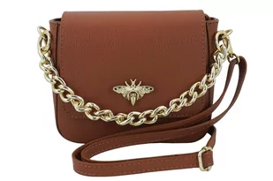 Wnętrze torebki: modna torebka skórzana ze złotym łańcuszkiem i ozdobnym zapięciem jest jednokomorowa, wykończona podszewką. Wewnątrz wyodrębniono małą zasuwaną kieszonkę mieszczącą drobne kosmetyki. Listonoszka posiada złote okucia, długi dopinany i regulowany pasek (maksymalna dł. 126cm, maksymalna wys. 62cm), jest zasuwana i dodatkowo zamykana ozdobnym zapięciem. Ten model torebki wyróżnia również złoty łańcuszek, który jest dopinany, nie posiada regulacji (dł. 32cm, wys. 12cm). Wyróżnij stylizację torebką z naszego sklepu - w najnowszej kolekcji znajdziesz wiele modeli torebek skórzanych, plecaków oraz torebek klasycznych.