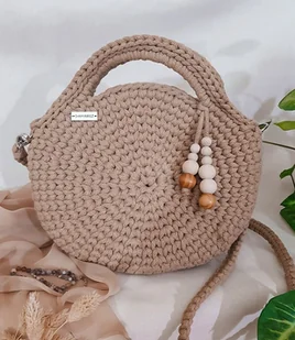Okrągła torebka na szydełku ze sznurka - whiskey