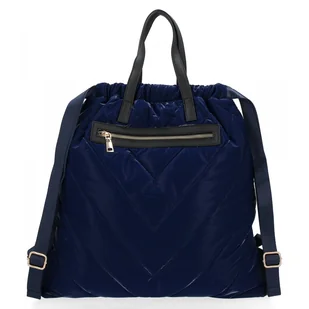 Funkcjonalna, modna i pakowna – taka jest ta pikowana torebka damska XXL od firmy Herisson! Została wykonana z połyskującego materiału o charakterystycznym nitkowaniu, dzięki czemu jest ultralekka i stylowa zarazem. Sprawi, że każdy Twój codzienny outfit nabierze modnego wyglądu, a Ty natomiast poczujesz komfort użytkowania. Torba jest wyposażona zarówno w szelki, jak i krótką rączkę, dzięki czemu możesz nosić ją w ręku lub na plecach. Świetnie sprawdzi się w tym sezonie, dopełniając puchową kurtkę czy casualowy płaszcz. Zamów! Granatowa torebka damska jest ponadczasowa.