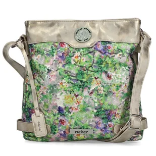 Producent: Rieker Kod producenta: H1304-90 MULTI Kolor: złoty, wielokolorowy, zielony Materiał: skóra ekologiczna, materiał Komora zamykana na: zamek Wymiary torebki: