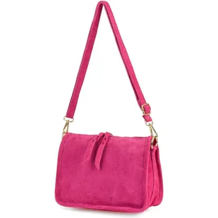 Różowa skórzana listonoszka damska włoska zamszowa kuferek Beltimore B64 różowy