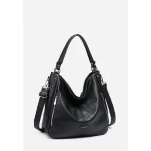 Torebka damska LUIGISANTO V8004-5 BlackTorebka Damska Lugisanto - Elegancja i Praktyczność w JednymOdkryj wyjątkową torebkę damską Lugisanto V8004-5, która łączy w sobie nowoczesny design i funkcjonalność, zapewniając doskonałe rozwiązanie na każdą okazję. Wykonana z wysokiej jakości skóry ekologicznej, torebka łączy elegancję z codzienną praktycznością, dostosowując się do Twojego stylu życia.Przemyślane WnętrzeGłówna komora torebki jest zamykana na solidny suwak, co zapewnia bezpieczeństwo przechowywanych rzeczy. Wnętrze zostało starannie zaprojektowane, aby maksymalnie ułatwić organizację - znajdziesz tu przegrodę na suwak, idealną na cenne przedmioty, oraz dodatkową kieszonkę na suwak, która pomoże Ci przechować mniejsze akcesoria. Dodatkowo, dwie małe wsuwane kieszonki umożliwiają szybki dostęp do telefonu i drobiazgów, które musisz mieć zawsze pod ręką.Stylowe Detale i Funkcjonalne RozwiązaniaZ przodu torebki znajdują się dwie pionowe kieszonki na suwak, które są doskonałym miejscem na przedmioty, do których chcesz mieć łatwy dostęp. Z tyłu torebki umieszczono kieszonkę na suwak, która ułatwia przechowywanie kluczy czy portfela, zapewniając szybki dostęp do najważniejszych przedmiotów.Elegancja i KomfortTorebka Lugisanto wyróżnia się usztywnianym dnem, które utrzymuje jej kształt i zapewnia stabilność, dzięki czemu torba zawsze prezentuje się nienagannie. Okucia w kolorze srebrnym dodają jej nowoczesnego charakteru, a dopinany, długi, regulowany pasek umożliwia wygodne noszenie torebki zarówno na ramieniu, jak i przez ramię, dostosowując się do Twoich potrzeb.Wielkość i PraktycznośćChoć torebka mieści format A4, jej kompaktowe wymiary sprawiają, że jest idealnym wyborem na codzienne wyjścia, oferując jednocześnie przestrzeń, którą możesz wykorzystać według własnych potrzeb.Torebka damska Lugisanto to doskonały wybór dla kobiet ceniących elegancję, praktyczność i nowoczesny design w jednym.Specyfikacja torebki: