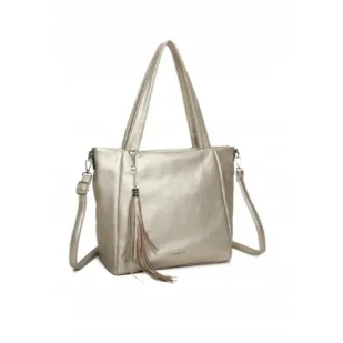 Torebka damska LUIGISANTO KX6754 GoldShopperka Damska Luigisanto - Elegancja i Praktyczność na Każdy DzieńPoznaj shopperkę Luigisanto KX6754, która zachwyca połączeniem klasycznego stylu i funkcjonalnych rozwiązań. Wykonana z wysokiej jakości skóry ekologicznej, przyciąga uwagę eleganckim wykończeniem, srebrnymi okuciami oraz dopinanym ozdobnym chwostem, który dodaje całości lekkości i modnego charakteru.Przemyślane Wnętrze i Wygodna OrganizacjaGłówna komora zamykana na suwak oferuje przestronne wnętrze, które z łatwością pomieści dokumenty w formacie A4. W środku znajduje się praktyczna przegroda na suwak, dodatkowa kieszonka na suwak oraz dwie wsuwane kieszonki, idealne na telefon, klucze i inne codzienne drobiazgi. Taki układ wnętrza zapewnia wygodę i porządek na co dzień.Funkcjonalne Kieszenie na ZewnątrzZ tyłu torebki umieszczono kieszonkę na suwak, która ułatwia szybki dostęp do najpotrzebniejszych rzeczy, takich jak dokumenty, klucze czy telefon - bez konieczności otwierania głównej komory.Stylowe Detale i Solidna KonstrukcjaUsztywniane dno nadaje torebce trwałość i stabilny kształt, nawet przy pełnym obciążeniu. Srebrne okucia oraz dopinany ozdobny chwost podkreślają elegancki, a zarazem nowoczesny charakter modelu, sprawiając, że doskonale uzupełnia on codzienne i półformalne stylizacje.Luigisanto - Pojemność i Styl w JednymShopperka Luigisanto to doskonały wybór dla kobiet, które szukają praktycznego, a jednocześnie stylowego dodatku. Dzięki dużej pojemności, starannie zaprojektowanemu wnętrzu i modnym akcentom, ten model sprawdzi się zarówno w pracy, na uczelni, jak i podczas codziennych wyjść, zapewniając wygodę i szyk każdego dnia.Specyfikacja torebki: