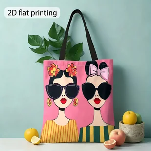 TEMU Prezent na Boże Narodzenie, modne 2D, różowe tło, torba na ramię z nadrukiem okularów, torba na zakupy wielokrotnego użytku, damska torba i