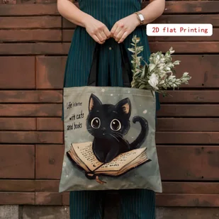 TEMU Stylowa, dwustronna torba typu tote z nadrukiem dla kobiet, z motywem kota i książek. Ta duża, wielorazowa torba na ramię to idealny prezent na