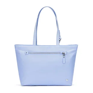 Torba damska antykradzieżowa Pacsafe W - błękitna Ta pojemna torba oferuje wyrafinowany, minimalistyczny styl, idealny w podróży, do pracy lub w każdej sytuacji wymagającej dużej ilości miejsca. Wyposażona jest w wyściełaną przegrodę na laptopa do bezpiecznego przechowywania sprzętu elektronicznego, przegrodę bagażową ułatwiającą transport, przednią komorę z szybkim dostępem, pojemną kieszeń zapinaną na zamek z blokadą RFID oraz liczne przegródki na telefon, długopisy, przenośną ładowarkę i wiele innych rzeczy. Dyskretne zabezpieczenia antykradzieżowe zapewniają Ci spokój ducha. Torby damskie z serii Pacsafe W to szyk i elegancja Wewnętrzne kieszenie do uporządkowania sprzętu Kieszeń na tablet lub laptop o przekątnej 13" Wnętrze torby jest jasne co bardzo ułatwia odszukanie w nim konkretnego przedmiotu Ekspres komory głównej został zabezpieczony przed niepożądanym rozsunięciem Zamykana na ekspres główna komora z organizerem na telefon i inne akcesoria Zabezpieczona technologią eXomesh, która chroni przed kradzieżą poprzez rozcięcie torby Specjalna kieszeń chroni karty oraz dokumenty wykorzystujące technologię RFID przed zeskanowaniem i kradzieżą tożsamości Szlufka na długopis ułatwiająca przechowywanie ? TurnNLock Security Hook – Obrotowy karabińczyk z blokadą Inteligentny zaczep, który pozwala szybko zabezpieczyć torbę wokół nogi stołu. Ty jesz spokojnie obiad, a Twój bagaż nigdzie się nie wybiera.