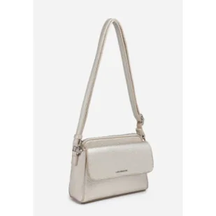 Torebka damska LUIGISANTO HS7229 GoldTorebka LUIGISANTO HS7229 o prostokątnym kształcie. Zarówno z przodu jak i z tyłu posiada wsuwaną przegródkę, która na froncie dodatkowo zamykana jest klapą na zapięcie magnetyczne. Na nakrywie delikatne logo marki. Pakowne wnętrze zawiera mniejszą kieszonkę na suwak. Posiada odpinany pasek, z regulacją długości. Odszyta z jakościowej skóry ekologicznej, nie mieści formatu A4. Dedykowana dla tych z Was, które cenią prostotę oraz wygodę noszenia. Specyfikacja torebki: