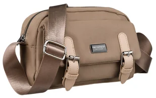 Torebka damska mała beżowa listonoszka na ramię szeroki pasek kieszonki lekka i pojemna PETERSON